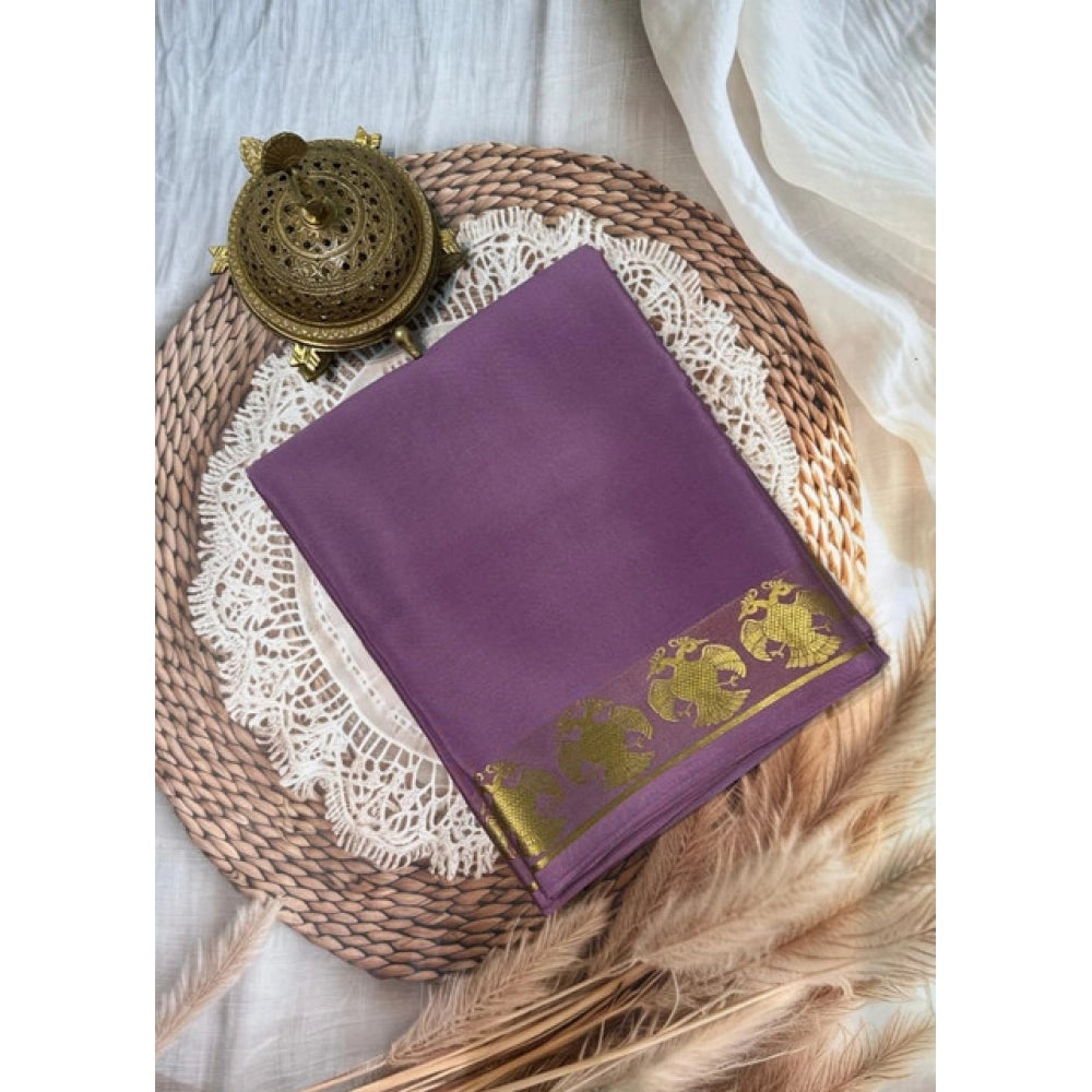 Generic Women's Crepe Chit Pallu Solid Saree With Unstitched Blouse 5.5Mtr (Lavender)