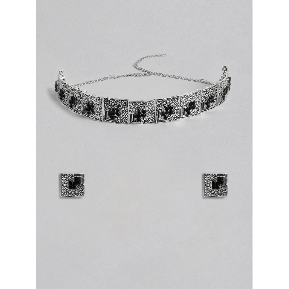 महिलाओं के लिए रोज़ गोल्ड प्लेटेड अलॉय नेकलेस और इयररिंग्स का जेनेरिक सेट (सिल्वर और ब्लैक)