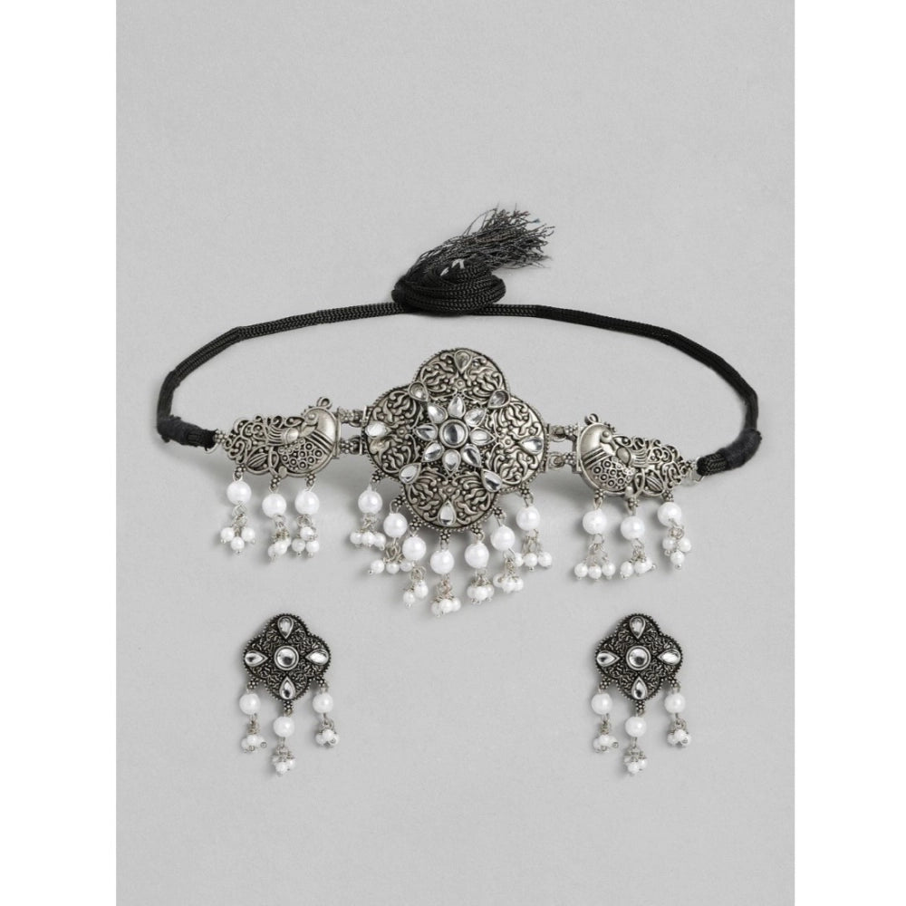 महिलाओं के लिए रोज़ गोल्ड प्लेटेड अलॉय नेकलेस और इयररिंग्स का जेनेरिक सेट (सिल्वर और व्हाइट)